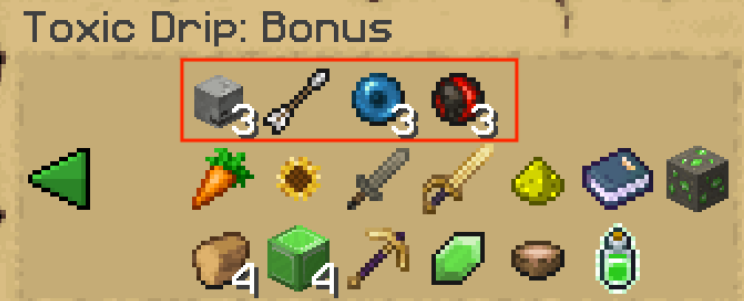 - Damage(Ore) & Attack(Crop) & MultiHit(Fish)