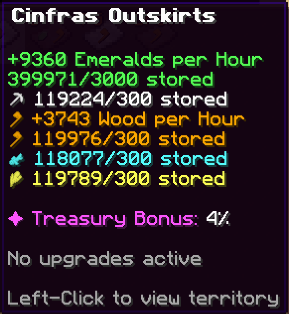 一部テリトリーには例外があり、資源やエメラルドを通常の二倍生成してくるテリトリーも存在します。